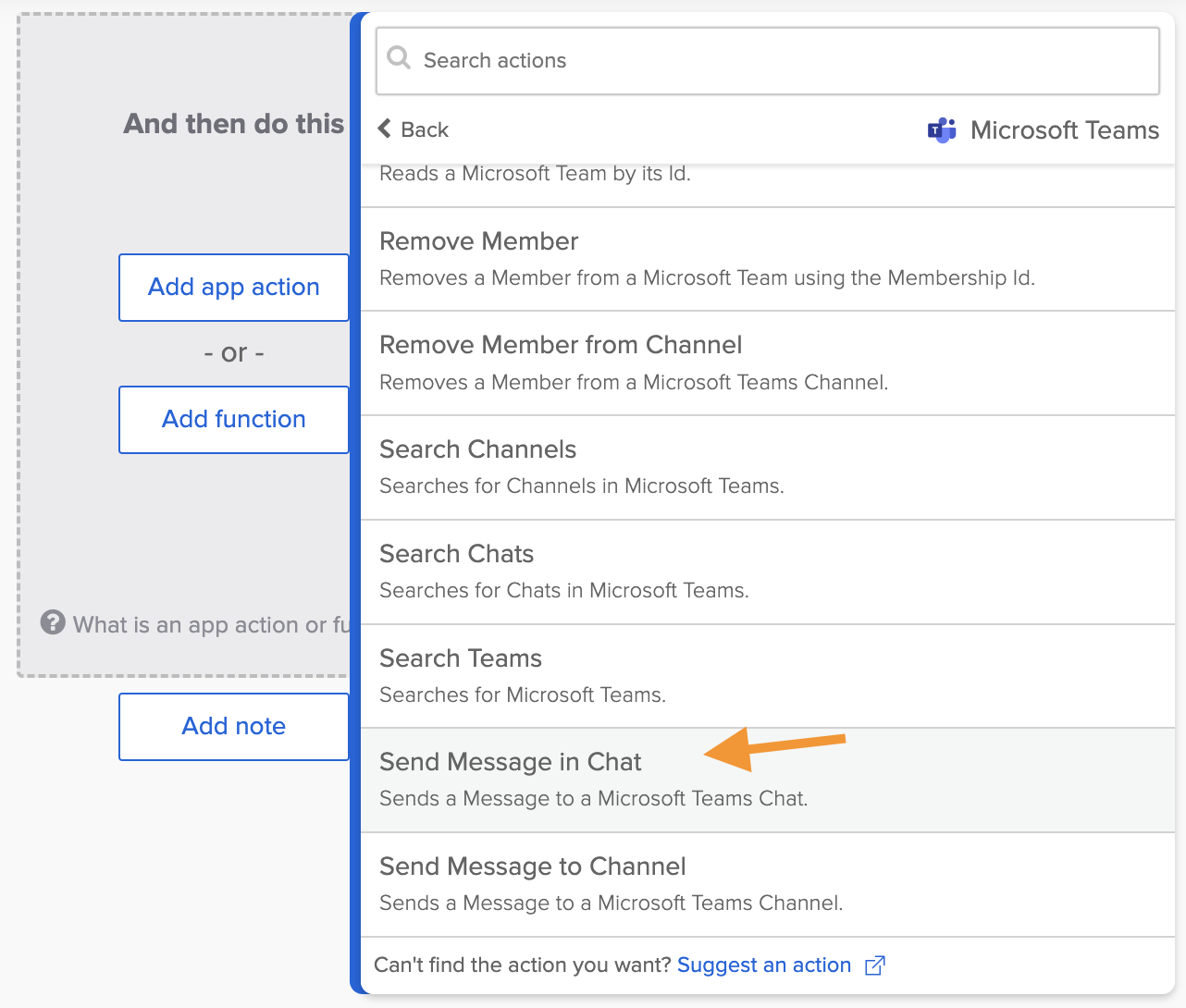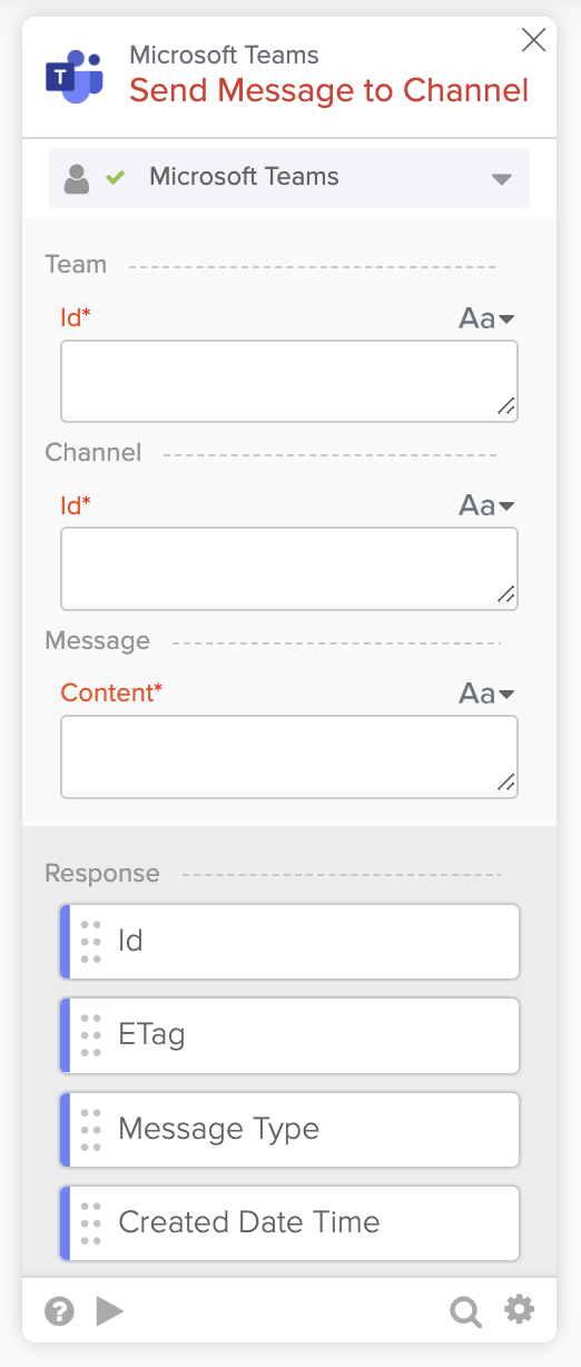 To send a message to Microsoft Teams, you will use the Microsoft Teams connector.