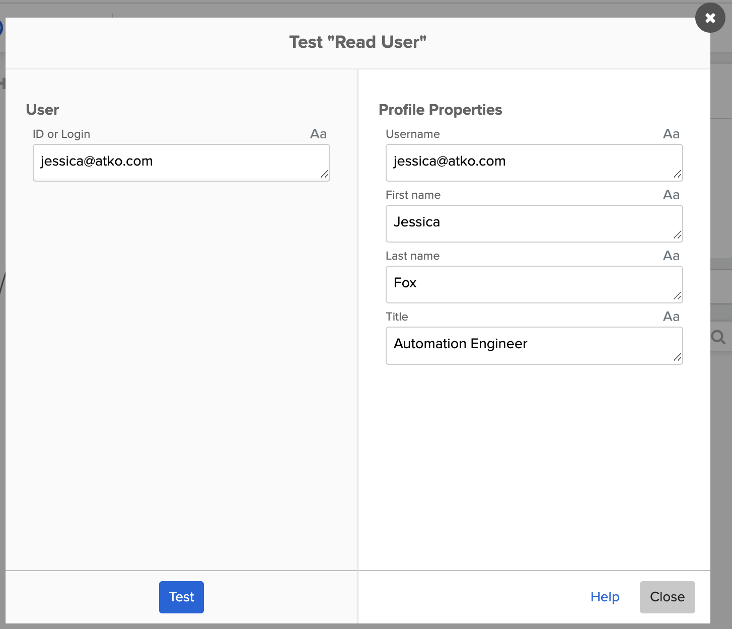 - To test with the user ID, copy it from the Execution History page. Copy the ID from the Okta User field in the User Activated card.