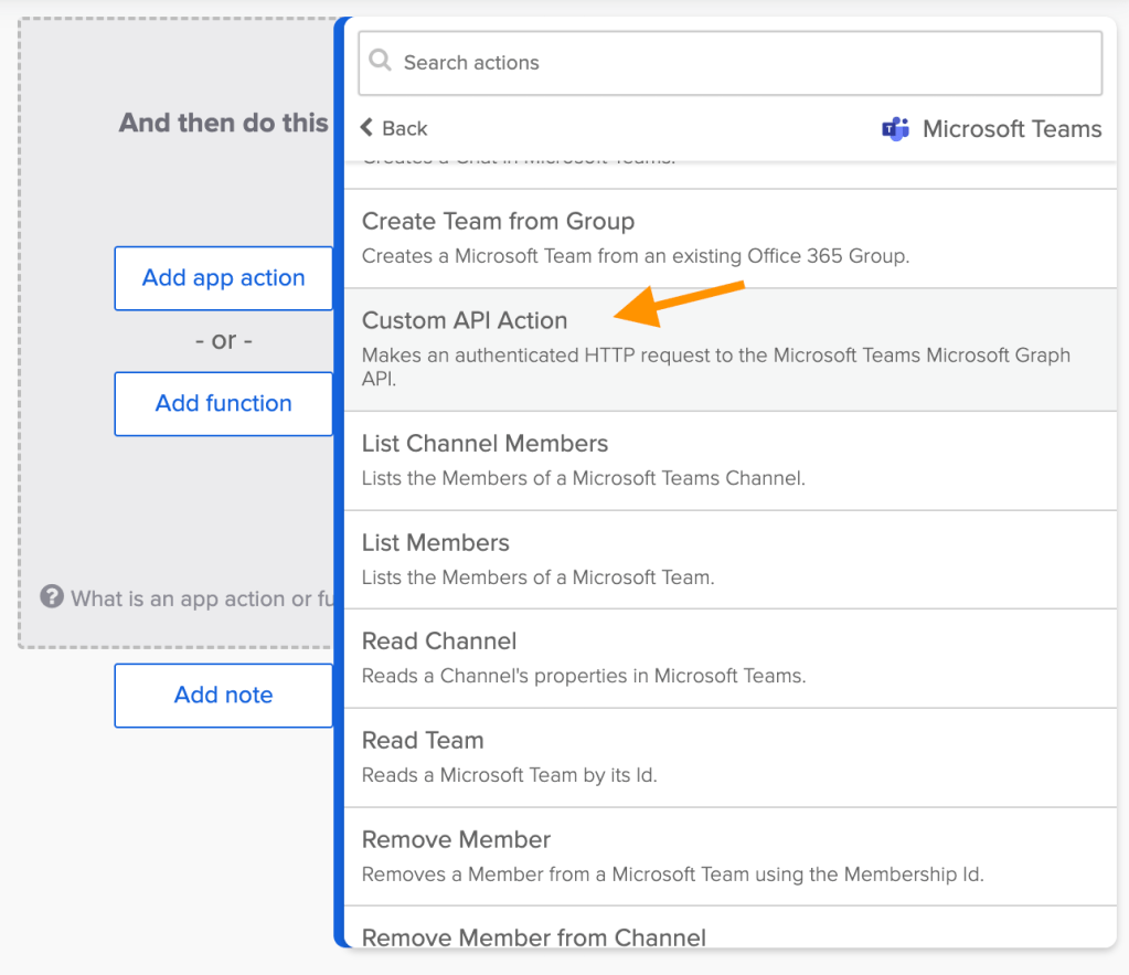 Add the Microsoft Teams Custom API Action