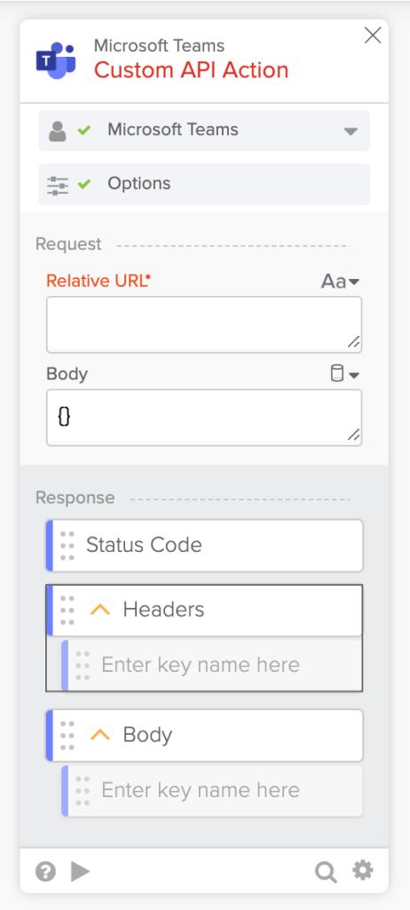 The Microsoft Teams – Custom API Action card: