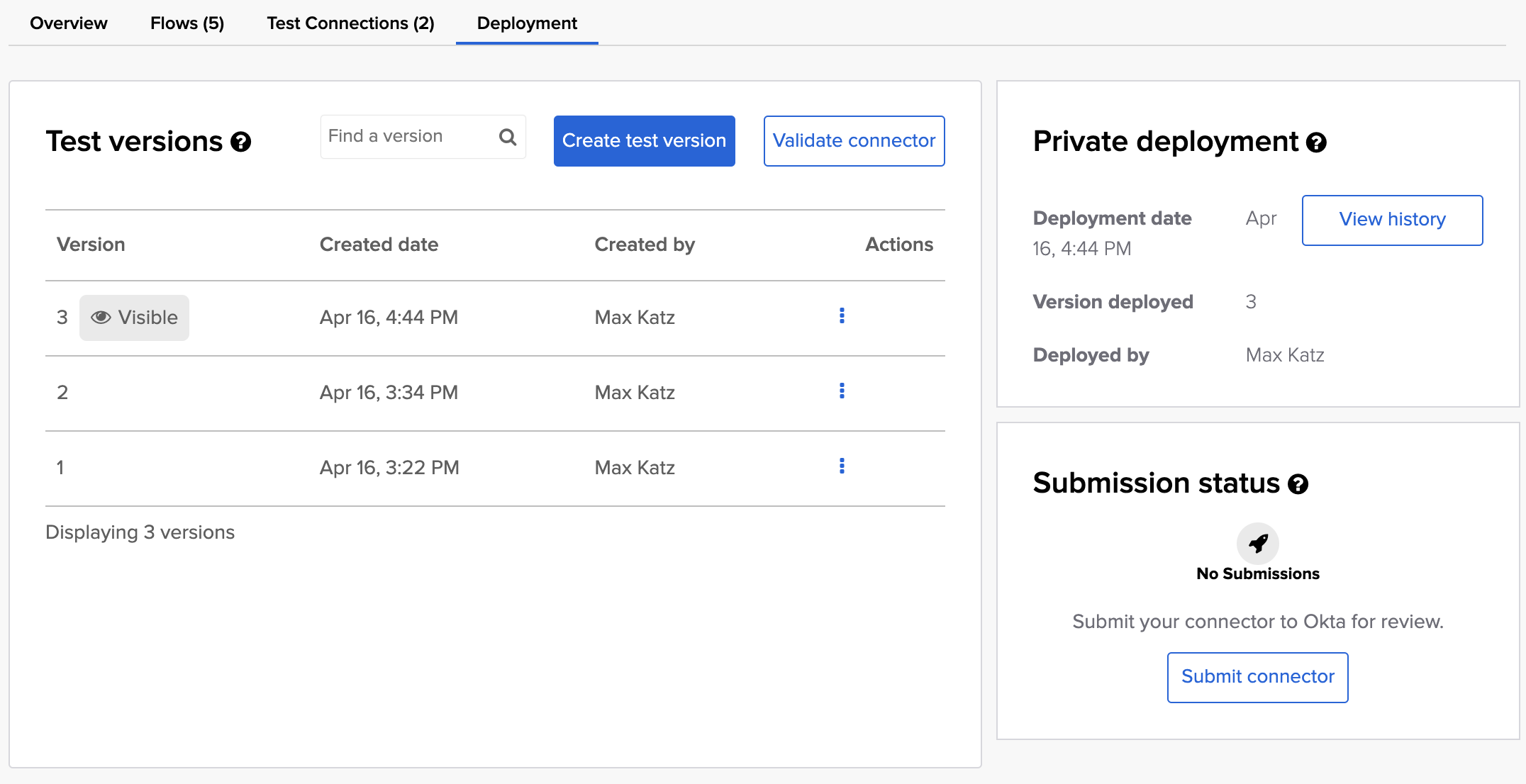 A connector can have other flows, such as OAuth authentication. This tutorial will not cover OAuth authentication.