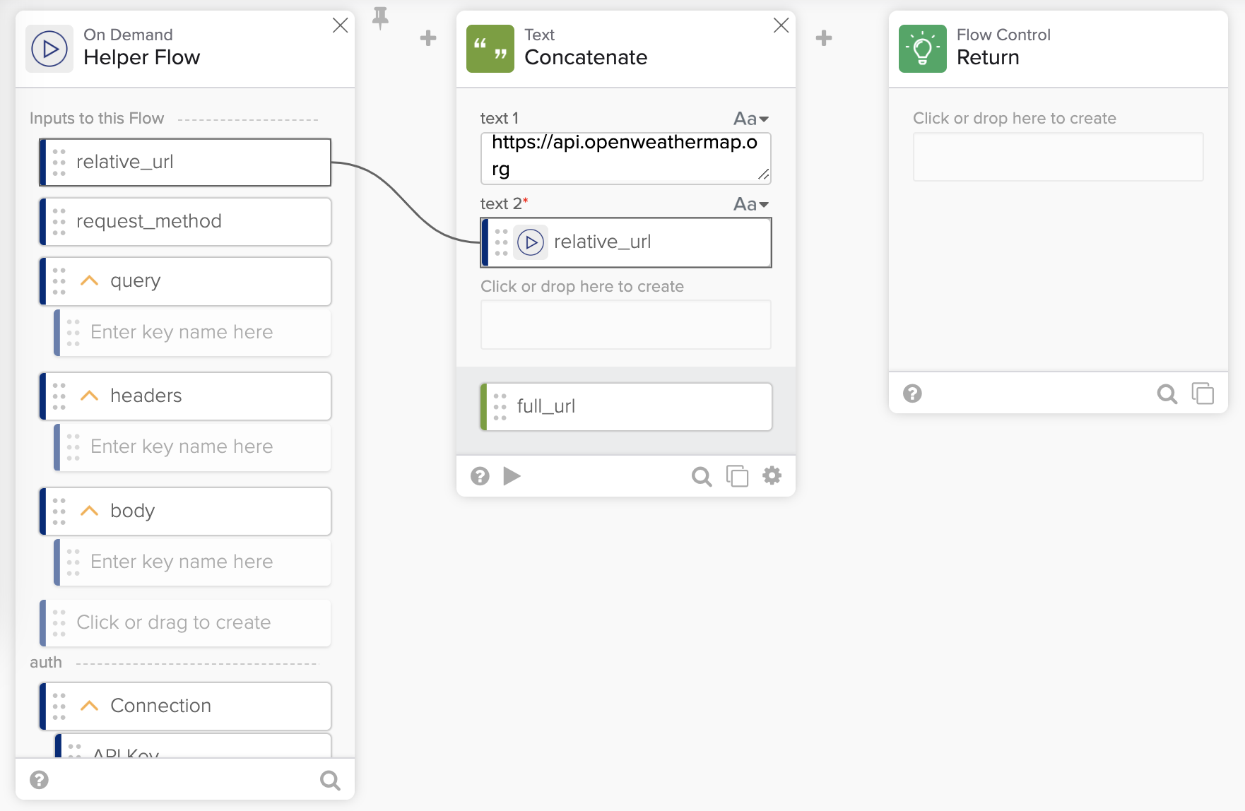 The connector will support multiple OpenWeather endpoints. The base URL stays the same, and the relative URL will change. You need to combine the two values into a full URL.