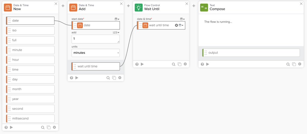 The Flow Control – Wait Until card sets up the time to resume the flow.