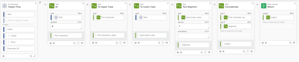 The Text – Concatenate card combines the first letter in upper case with the rest in lower case text.