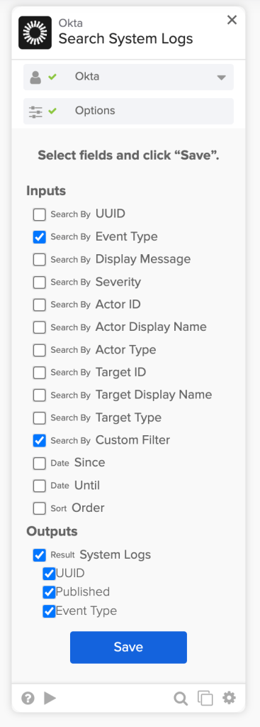 This guide will teach you how to search the System Log using the Okta—Search System Logs card in Okta Workflows.