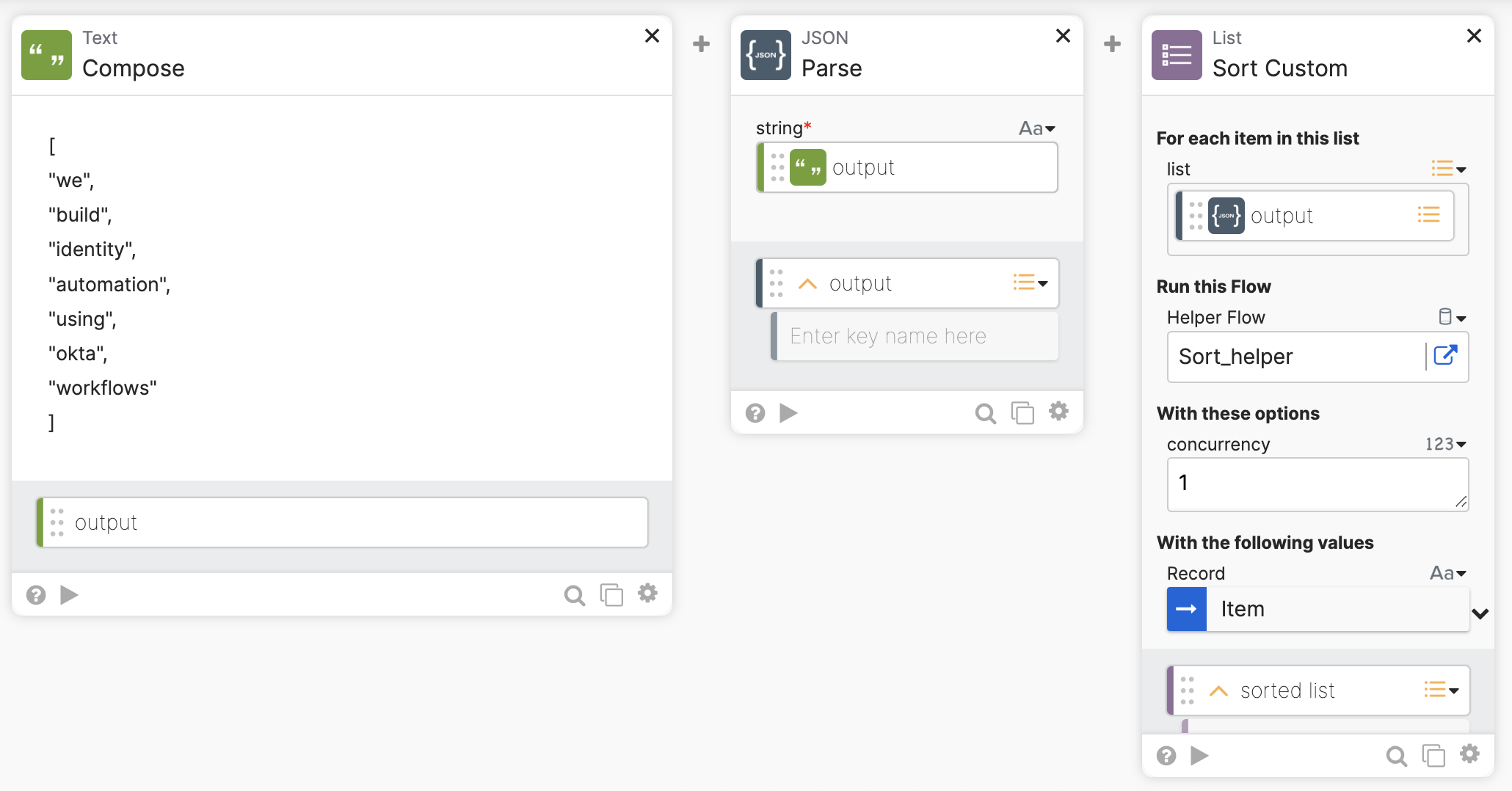 This guide will teach you how to set up a custom sort in Okta Workflows.