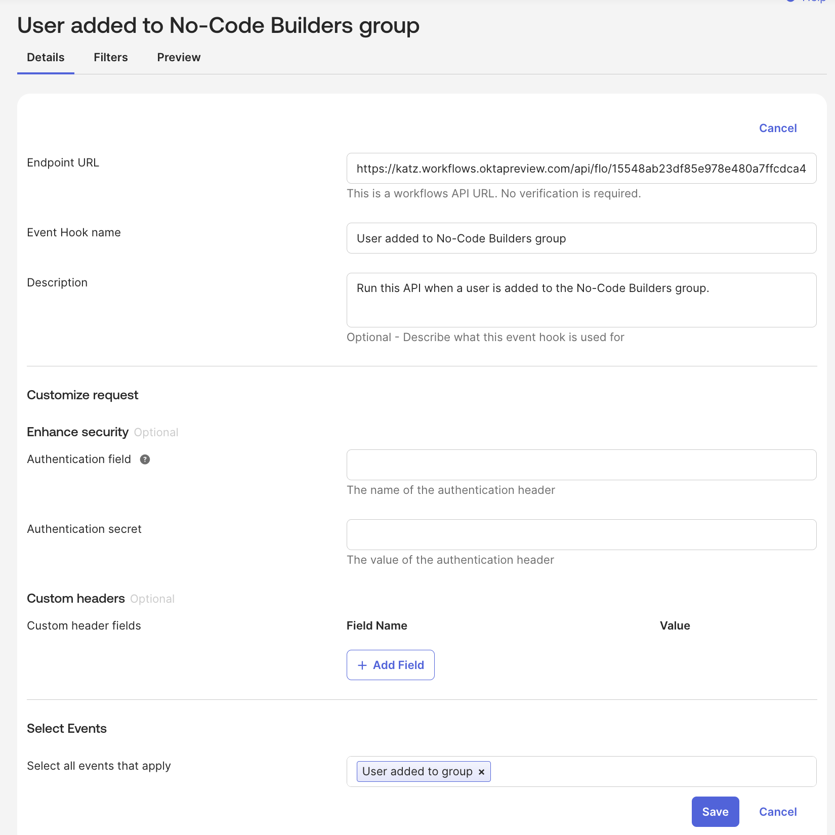- Okta Workflows Tutorial: Notify When a User is Added to a Group (with Event Hook filtering).