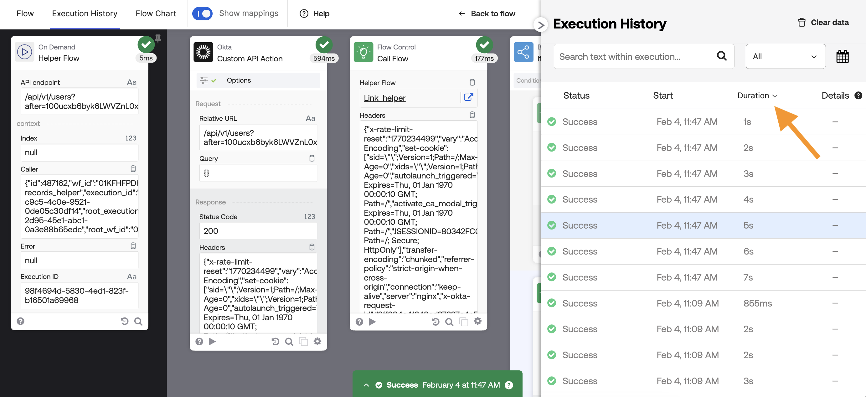 When viewing a flow’s Execution History, the default view is Duration, or how long the flow ran.
